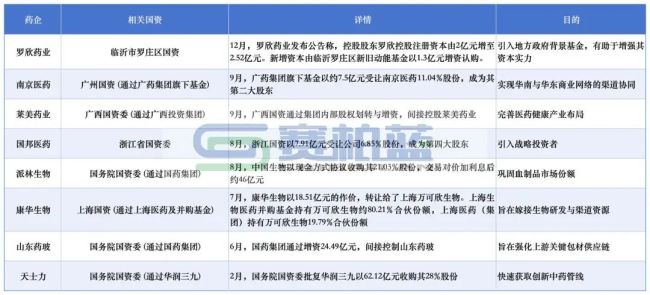 不只是太龙药业,在“并购六条”等政策的支持下,以及生物药、创新药大力发展的背景下,这一年国资加入药企的动作不断。