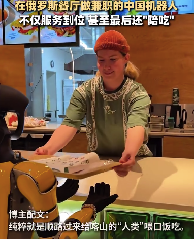 近日,一中国机器人在俄罗斯餐厅当服务员的视频在社交媒体走红,视频中的机器人不仅会取餐传菜,还会坐下来陪吃,情绪价值拉满!