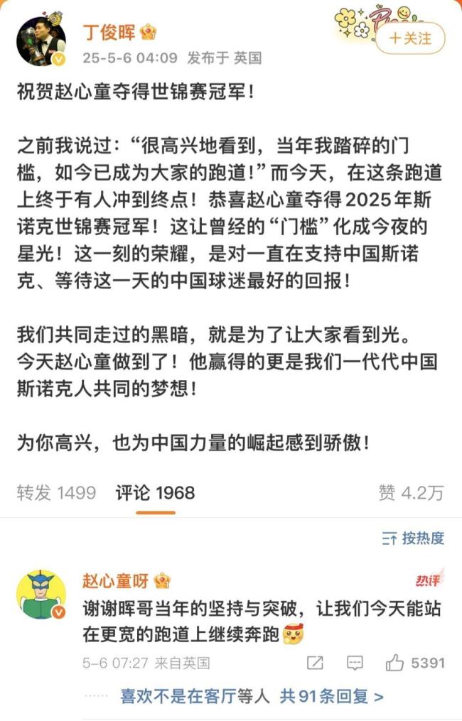 中国球迷等待这一刻已经很久。自2005年丁俊晖首夺排名赛冠军以来,中国斯诺克运动逐渐在国际赛事中崭露头角。20年来,中国斯诺克选手们前赴后继,在一代代人的努力下,终于摘下了斯诺克运动皇冠上的明珠——世锦赛冠军。