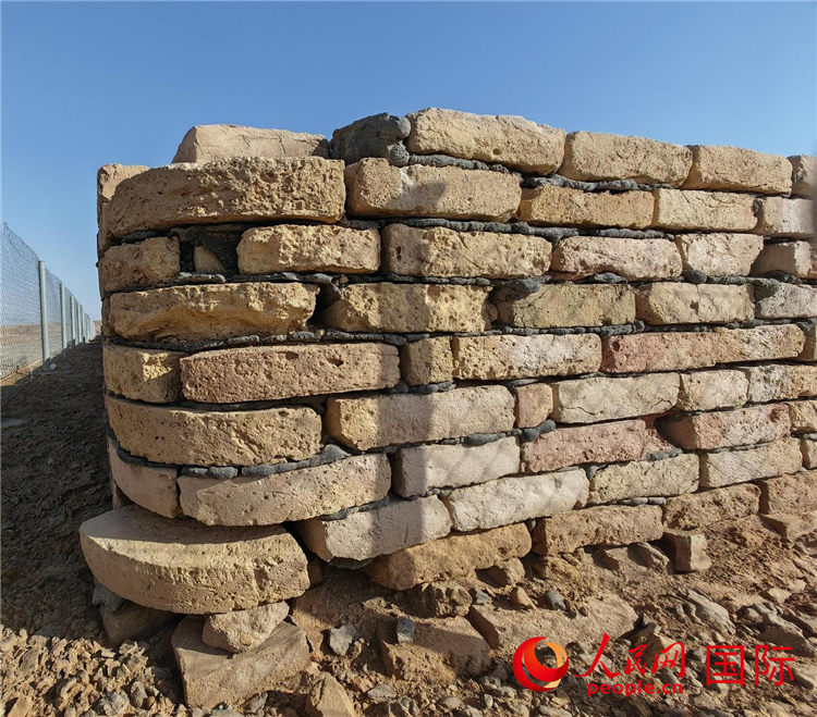 乌尔古城建筑的墙基。黑色部分为沥青。人民网记者 管克江摄