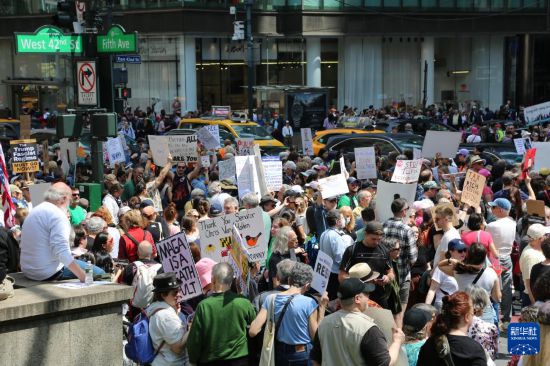 4月19日,人们在美国纽约街头参加抗议活动。新华社记者 刘亚南 摄