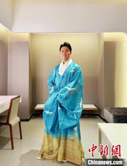在南京演出期间,陈锐身穿乐迷赠送的汉服。受访者供图