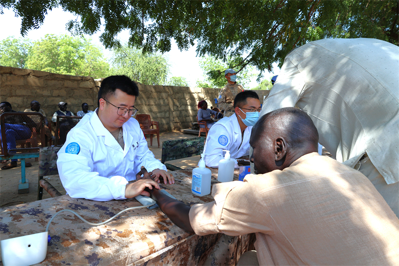 人民网内罗毕11月5日电 (记者黄炜鑫)近日,中国赴阿卜耶伊维和快反分队、直升机分队医护人员在任务区平民医院开展义诊活动,为当地民众提供免费诊疗服务。