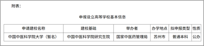 “国”字号大学具有重要地位。“中国中医科学院大学”以“中国”为前缀,与已成立的中国科学院大学和中国社科院大学一样,成为“国”字号大学的领跑者。近年来新设立的高校很少以“中国”冠名,甚至“华东”、“华中”也少见。根据教育部规定,高校命名原则上不得使用“中华”“中国”“国家”“国际”等字样,也不得冠以“华北”“华东”“东北”“西南”等大区及大区变体字样。最新设立的几所新型研究型大学,如宁波东方理工大学、福建福耀科技大学都以所在地命名。苏州能拿下为数不多的“国”字号大学,含金量不低。