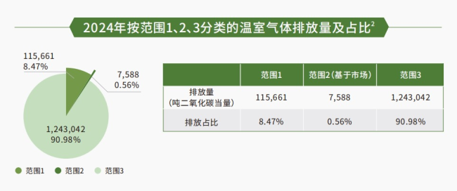 据了解,范围1、2都指向企业自身用电产生的直接或间接碳排放,范围3则涉及与其供应链相关的排放量,具体包括原材料采购、生产及运输等。