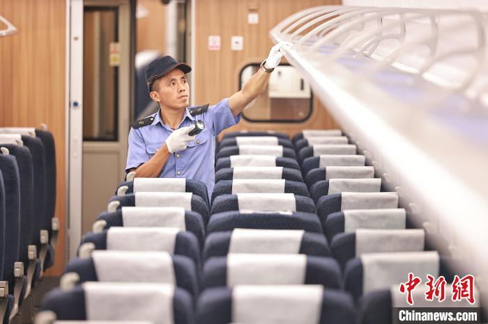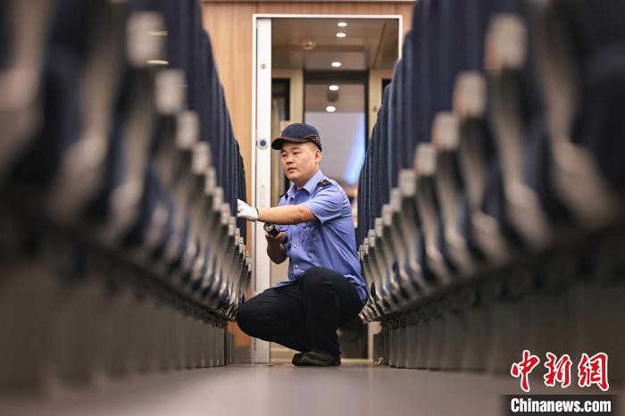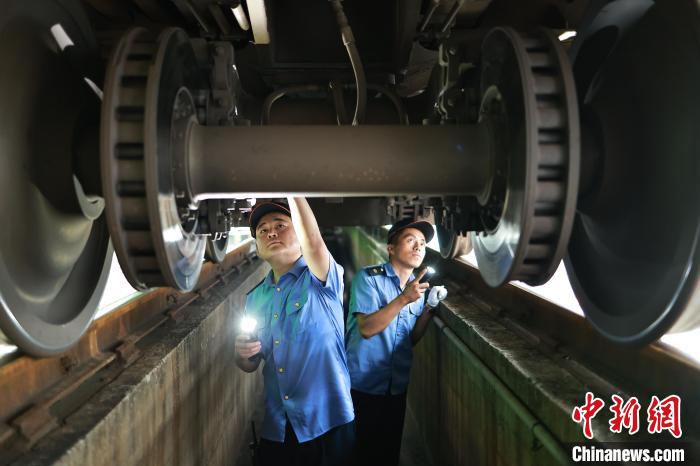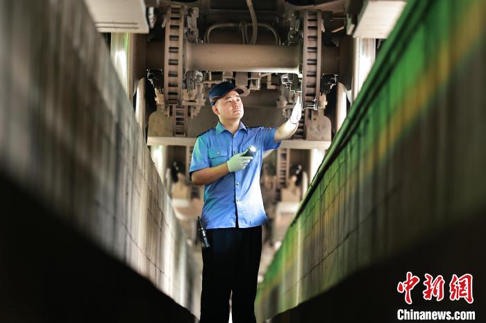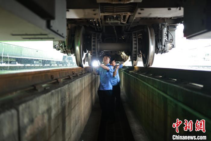 图为检修人员正在检修动车组列车。苏志刚 摄