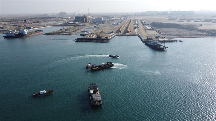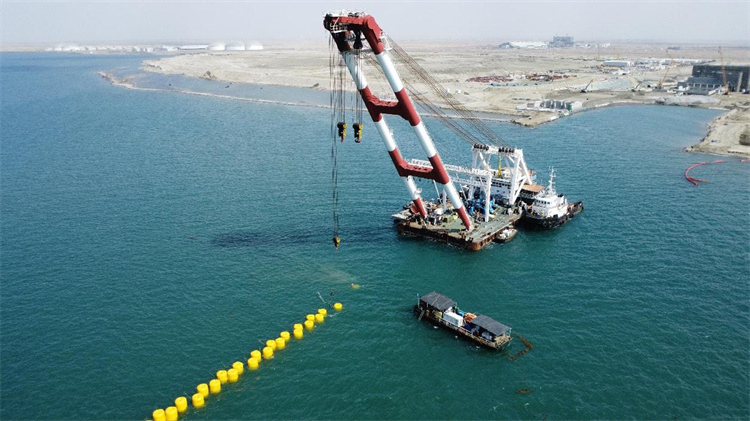 人民网迪拜7月6日电 (记者管克江、任皓宇)近日,由中国港湾承建、中交四航局负责施工的沙特吉赞工业城海水冷却项目完成3.5米直径高密度聚乙烯(HDPE)管道在无掩护海域的出运安装,标志着世界上直径最大的柔性管道安装成功。