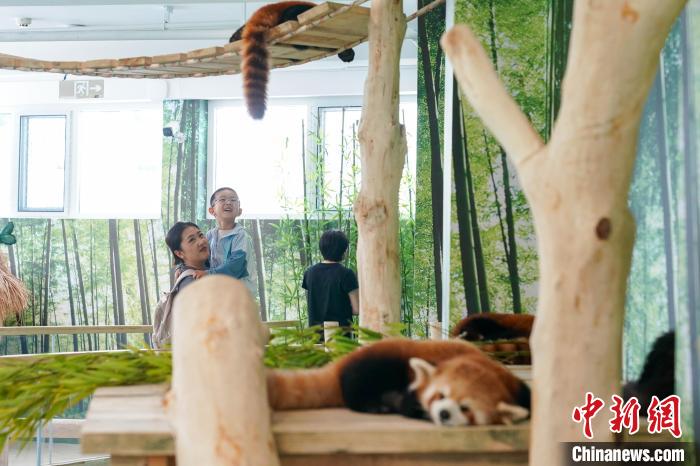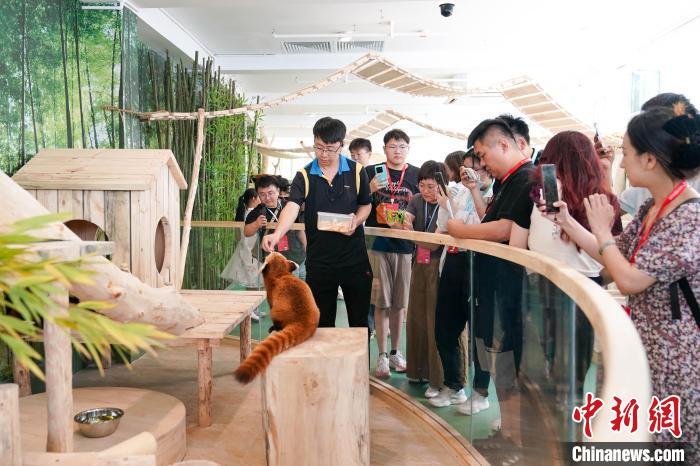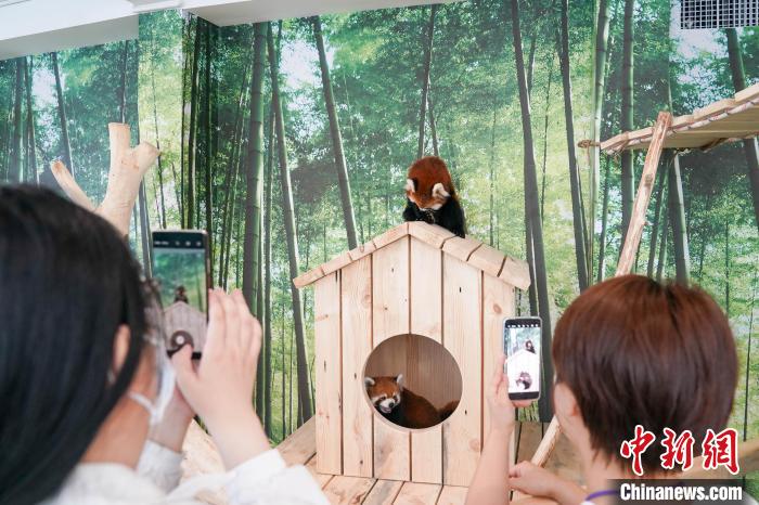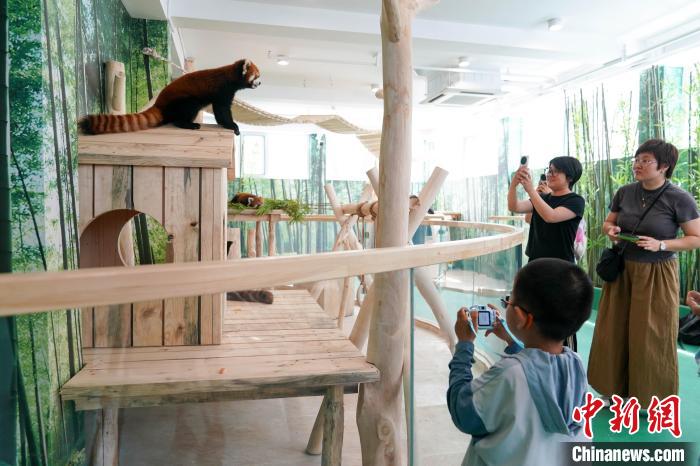 图为小熊猫吸引游客。中新社记者 赵宇航 摄