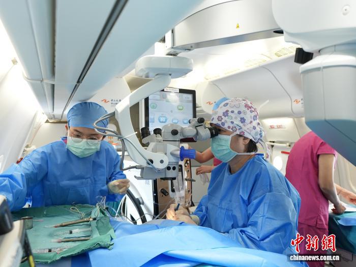在此次首航中,中山大学中山眼科中心知名眼科专家在机上为8名患者成功实施黄斑兜带、复杂白内障复明及玻璃体腔注药等手术。