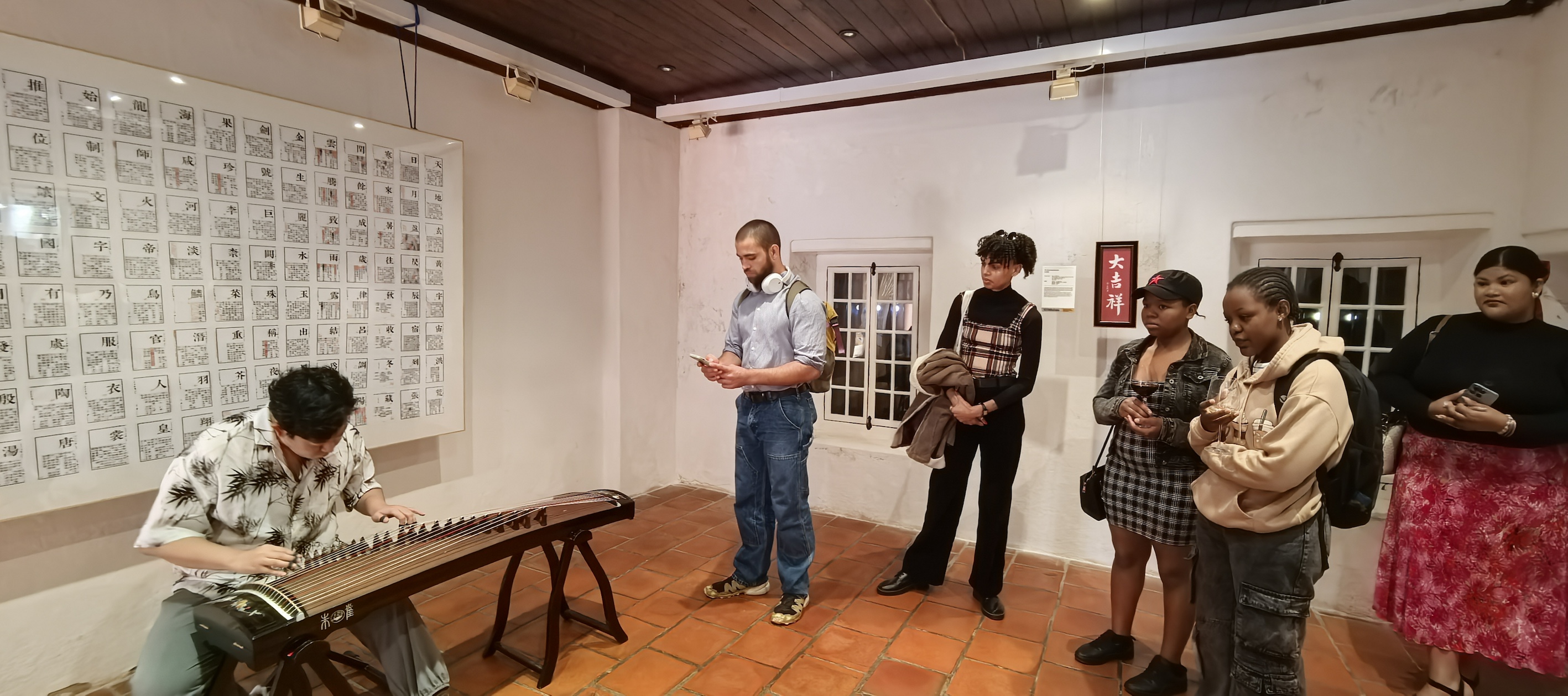 值得一提的是,展览采用互动式展陈设计,让观众在参与中感受汉字魅力。开普数学科技学院的学生们表示,这种沉浸式体验让他们对中国文化产生了浓厚兴趣。在展览现场,开普数学科技学院孔子课堂的公派教师高源老师在现场为观展民众表演了精彩的古筝名曲。