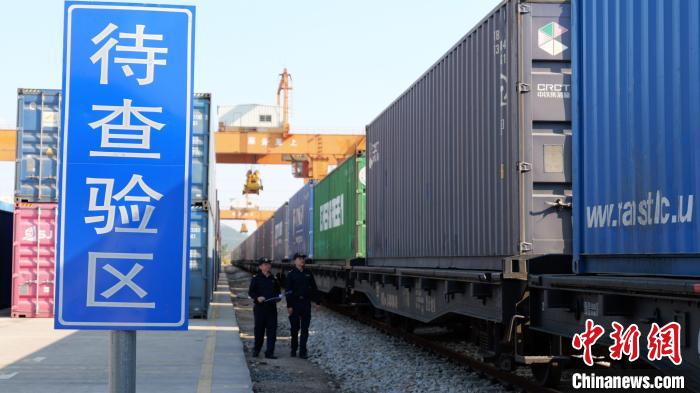 增城海关对中欧班列出口货物实施现场监管。徐晖 摄
