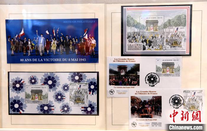 中新社法国兰斯5月7日电 (记者 李洋)法国当地时间7日发行纪念二战胜利80周年邮票。