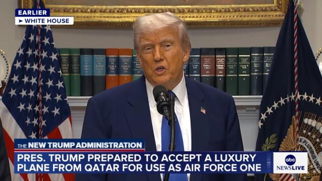 特朗普表示:“我认为这是卡塔尔的一个很棒的举动。我非常感激。我永远不会成为那种拒绝这样提议的人。如果我说‘不,我们不想要一架免费的、非常昂贵的飞机’,那我可就太愚蠢了。”他还补充说,卡塔尔赠送飞机是对美国提供保护的一种回应,认为这是一种善意的表示。