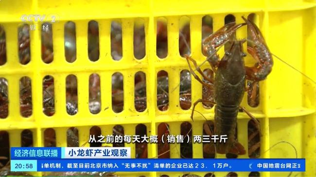 另一位批发商黄茂华也提到,他的销售量每天达到2万多斤,但价格有所下降。在另一个交易区,批发商谢军通过线上直播的方式销售小龙虾,当天销售了3万斤,其中90%是线上销售。据交易中心负责人郭颂介绍,目前整个交易中心每天交易量稳定在2000吨左右,运往全国600多个城市。