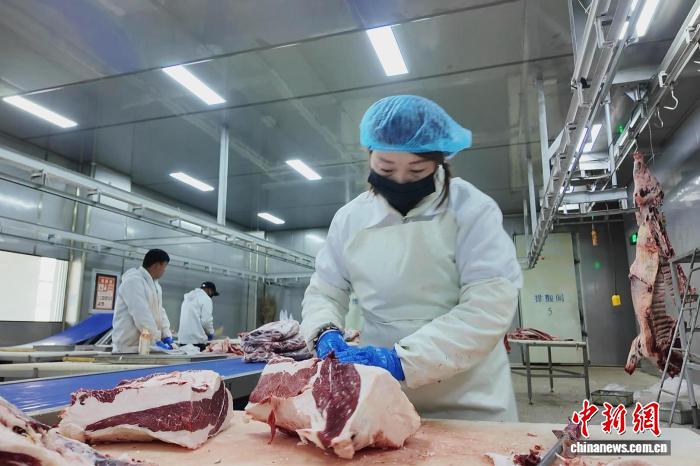 中新网固原11月24日电 (记者 李佩珊)11月24日,记者走进宁夏固原市隆德县一家企业的肉牛分割加工车间,只见工人娴熟地将肉牛分割成二十多个部位,预冷、打包等工序一气呵成。该企业收购屠宰了县内肉牛2360头,带动养殖户销售牛肉636吨,为农户带来可观收益。