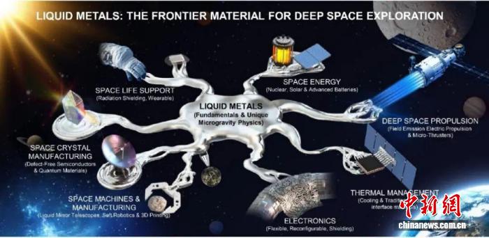 液态金属空间科技领域及关键应用范畴示意图。中国科学院理化所 供图