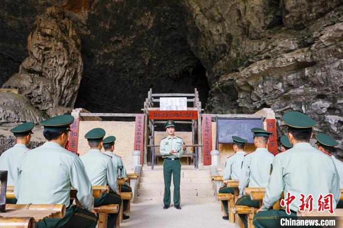 宣誓结束后,官兵们围坐在溶洞内的“竹子课桌”旁,认真聆听讲解员讲述革命先辈在艰苦环境中坚持斗争的事迹,在历史回响中筑牢“军魂永向党”的信仰根基。