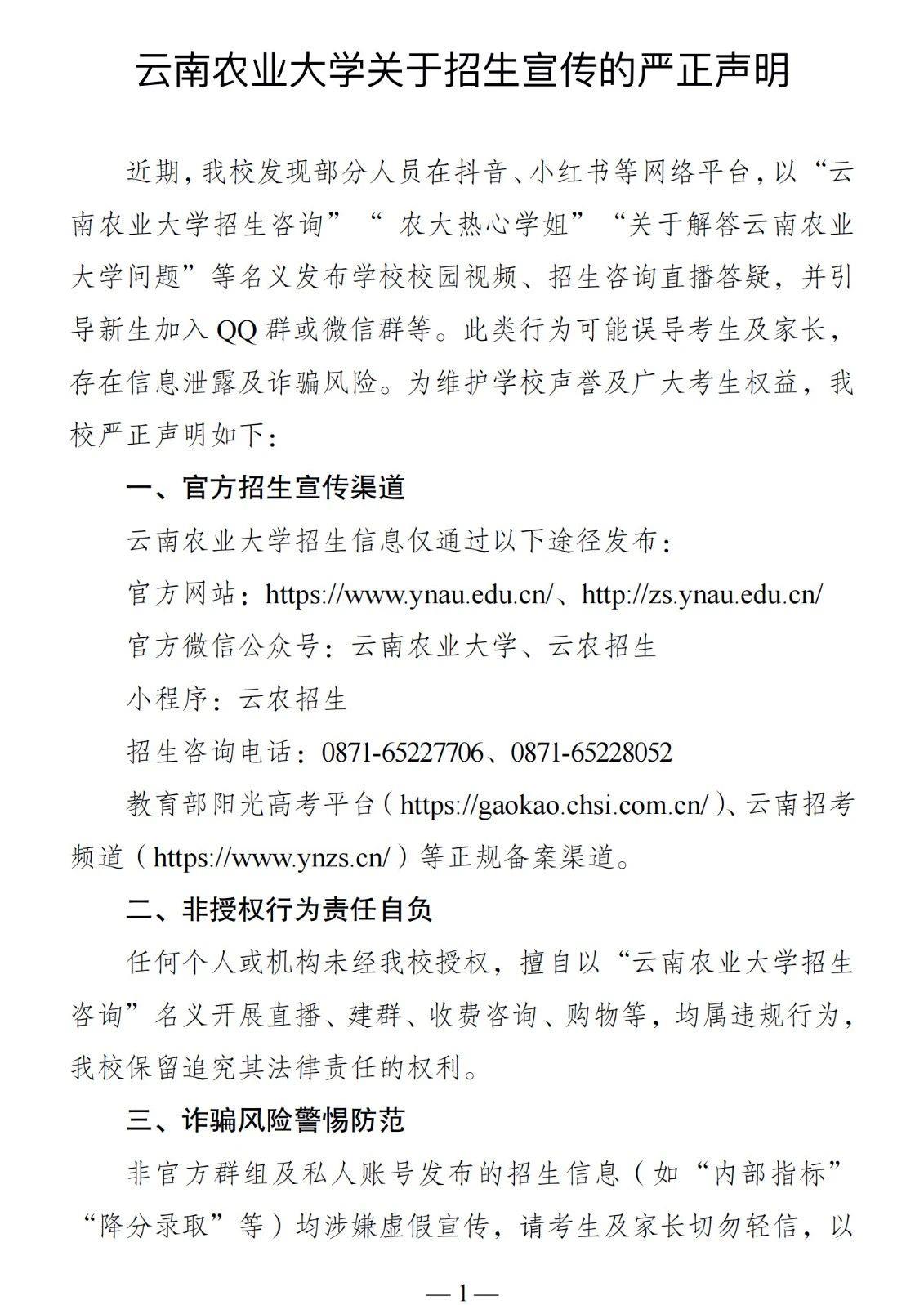 目前,云南省2025年普通高校招生录取工作正在进行中。7月23日,云南农业大学、滇西科技师范学院发表声明称,学校近期发现部分人员在网络平台传播非官方招生答疑信息,此类行为可能误导考生及家长,存在信息泄露和诈骗风险。