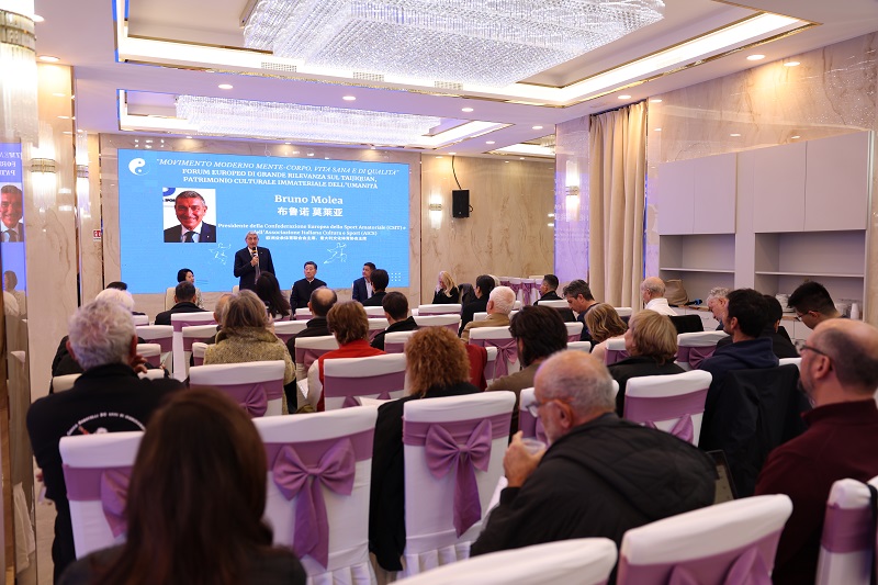 人民网罗马11月22日电(记者谢亚宏)太极拳人类非物质文化遗产欧洲高端论坛20日在意大利那不勒斯举办。本次论坛由意大利土河中国文化体育协会协同意大利文化体育协会坎帕尼亚大区委员会组织承办,旨在庆祝太极拳列入联合国教科文组织人类非物质文化遗产名录五周年,探讨中华传统瑰宝太极拳文化在当代欧洲社会的文化健康价值与传播推广。