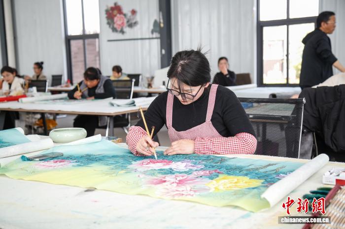 时下,走进菏泽市巨野县田桥镇东祝文化书院,十余名农民画师正俯身于案前,勾线、分染、罩染,颜色深浅不一的牡丹在勾描点染间渐次绽放。“以前农闲时只能在家看电视,现在步行十分钟到村书院教学点,就能学工笔牡丹画。”村民李常秋说。