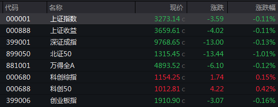 中新经纬4月21日电 周一,A股三大指数集体低开。上证指数跌0.11%,报3273.14点;深证成指跌0.13%,报9768.65点,创业板指跌0.16%,报1910.90点。