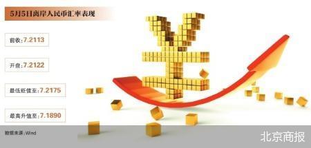 延续前一交易日的升值走势,5月5日,离岸人民币对美元汇率盘中强势上行,从7.21关口上方升破7.19,最高升值至7.189。在触及升值高点后,离岸人民币对美元汇率有所回落,围绕7.2关口波动。截至当日17时25分,离岸人民币对美元报7.2036,日内涨幅为0.11%。