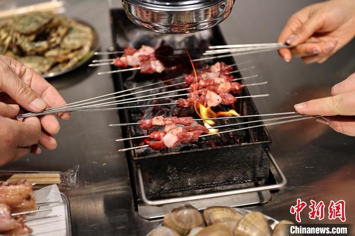 图为顾客在烤串。中新社记者 于海洋 摄