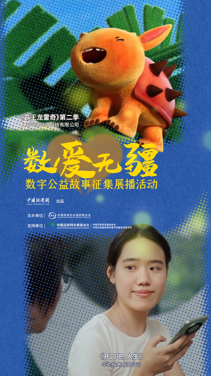 2024年11月起,中国网络社会组织联合会携手中国互联网发展基金会、中国新闻网,由中国互联网发展基金会中国正能量网络传播专项基金资助支持,组织开展“数爱无疆”数字公益故事征集展播活动,最终遴选出50个具有代表性的数字公益故事。“开口吧,人生”作品入选。