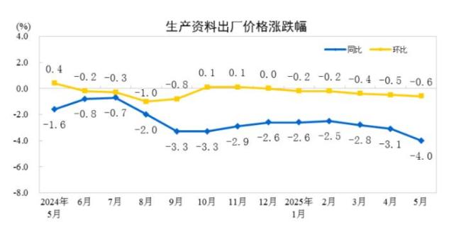 6月9日,国家统计局数据显示,5月工业生产者出厂价格指数(PPI)环比下降0.4%,与上月相同;同比下降3.3%,降幅比上月扩大了0.6个百分点。