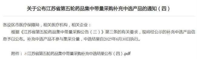 2024年11月,江苏省医保局发布《江苏省第五轮药品集中带量采购公告(一)》,标志着该省酝酿了近四个月的新批次省级集采正式启动。据悉,江苏省从未纳入国家集采,但已在外省集采降价的药品中筛选确定了75个西药品种、9个中成药产品组作为新批次集采品种。