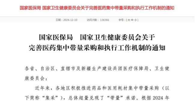 2024年12月,国家医保局和国家卫健委联合下发《关于完善医药集中带量采购和执行工作机制的通知》,重点从集采药品耗材的进院、使用、监测、考核、反馈等各环节提出细化措施,体现出部门间协同监管、优先使用中选产品的政策导向。值得注意的是,新规也对非中选产品施以更严约束。