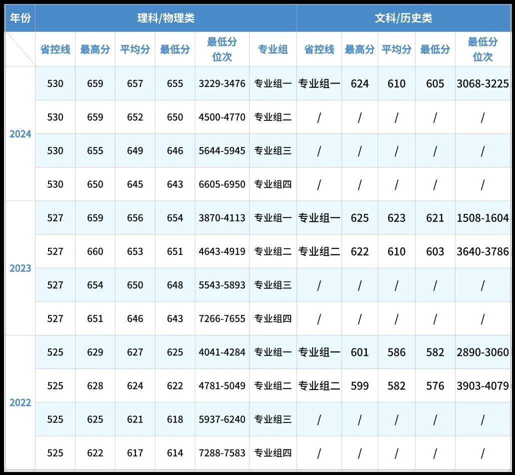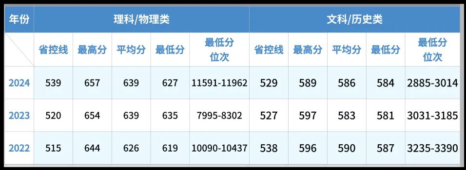 南航各省份录取分数线,