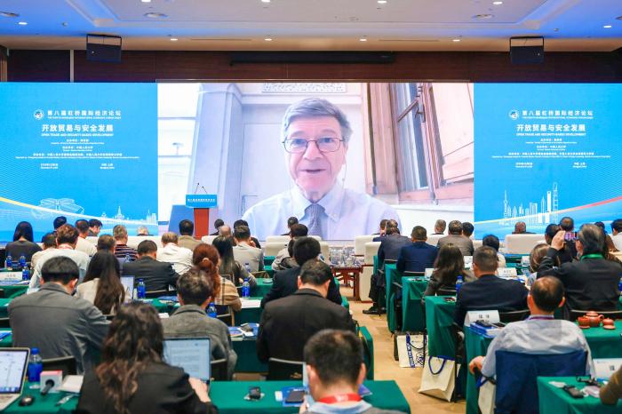 在11月5日举行的第八届虹桥国际经济论坛“开放贸易与安全发展”分论坛上,萨克斯发表主旨演讲。