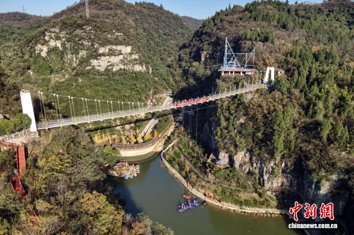 图为消防人员在高空中利用绳索救援系统转运“被困者”。袁唐伟 摄