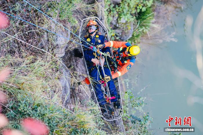 图为活动现场模拟垂直救援。袁唐伟 摄